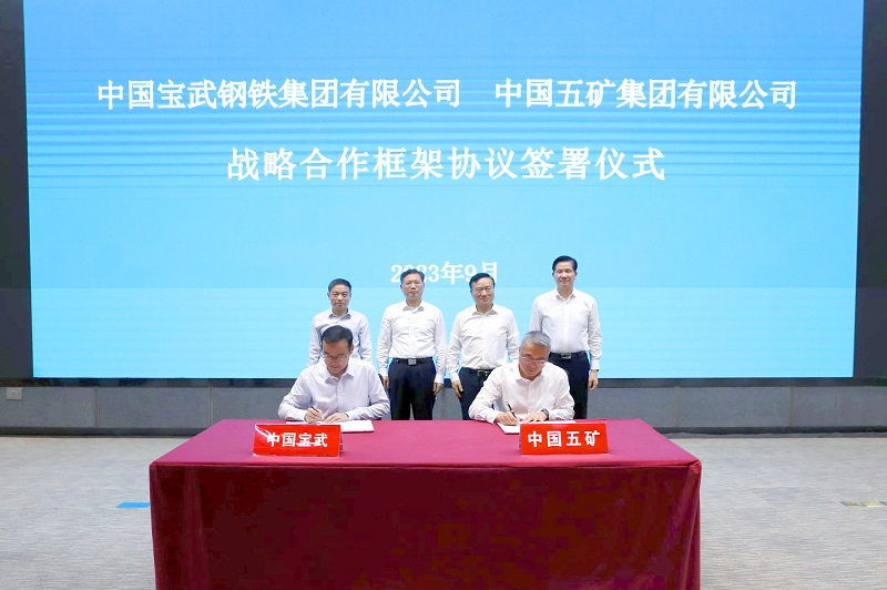 中国五矿党组成员、副总经理王石磊,中国宝武党委常委兼宝钢股份董事长邹继新代表双方签署协议。根据协议,双方将以推进国有资本投资公司改革、建设世界一流专业领军企业为导向,在钢铁产业转型升级与国际产能合作、深化智能制造、低碳清洁生产、矿产资源、贸易物流、环境与绿色资源等领域加强协同合作,更好发挥中央企业科技创新、产业控制、安全保障等战略支撑作用。